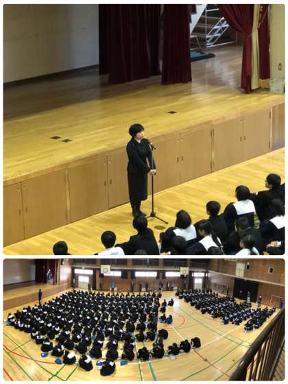 各学年の学年集会、学活が終わった後は体育館に移動し、終業式を行いました。