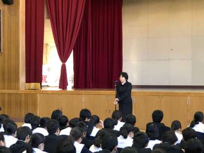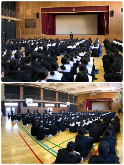 本日は3学期の始業式です。体育館に全校生徒が集まり、始業式を行いました。