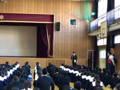 古川先生からは「冬休み中で気になったことがあれば、先生に伝えてください。また、2学期末に話をしましたが、登下校中の道の歩き方については再度気を付けてください。」という話がありました。
