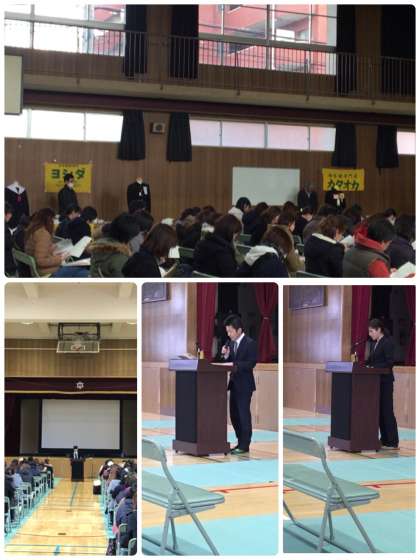 とても寒い中、多くの新入生の保護者の方に来ていただきました。約1時間の説明会となりましたが、最後までありがとうございました。本日お越しにならなかった方への資料の配布につきましては、小学校を通してお渡しさせていただきます。