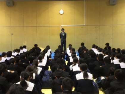 平賀先生からは、最近の1年生の学校での過ごし方について、「昨日、放課後に1年生の校舎を歩いていると、トイレがとても汚かったです。トイレットペーパーや石鹸が大切に使用されていないようでした。物を大事に扱ってください。」という話がありました。