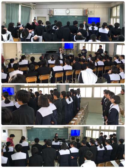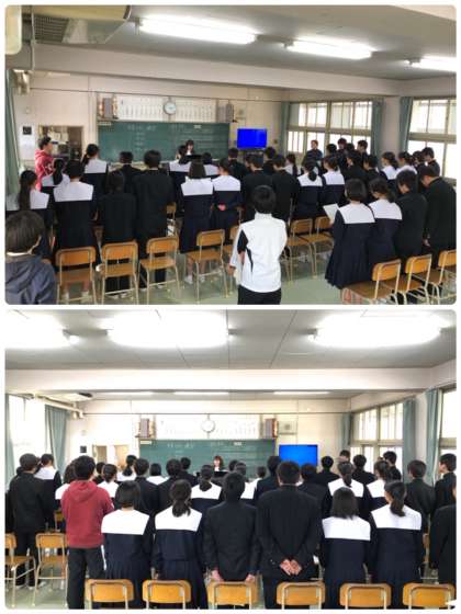 玉置先生、川渕先生から、在校生は3年生をどのように送り出すべきかという話の後、歌の練習へと移りました。