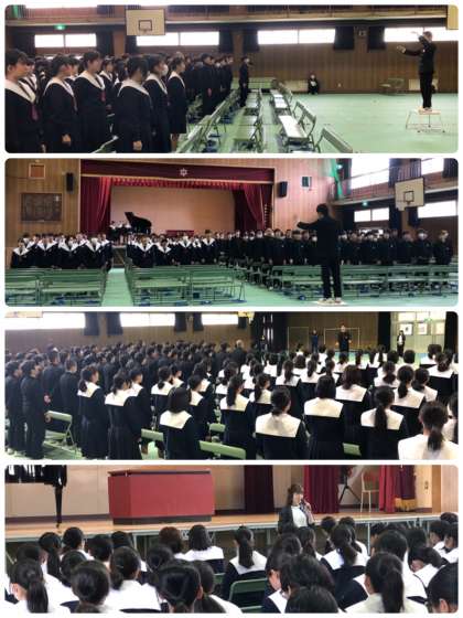 各クラス単位では授業で歌ってきましたが、3年生全員で歌うのは今日が初めてでした。