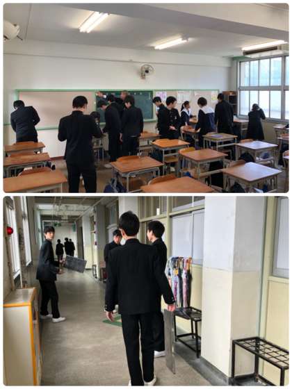 3年生校舎の教室、廊下、窓などの掃除を行いました。
