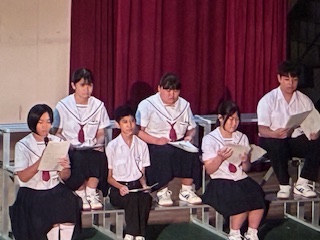 ?「放送部による発表」、「クスノキと少年」(東野圭吾作)朗読[image1.jpeg][image2.jpeg][image3.jpeg]劇です。