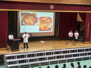 ?「2年生発表」です。「世界の国へようこそ!!様々な国を紹介します!」というテーマで発表がありました。[image0.jpeg][image1.jpeg][image2.jpeg]