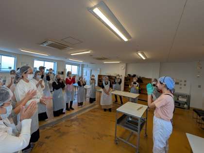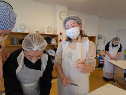 かまぼこに続いてちくわ作りにチャレンジしました。係の方から「ちくわは難しい」と聞きましたが、皆さん上手く出来ました。