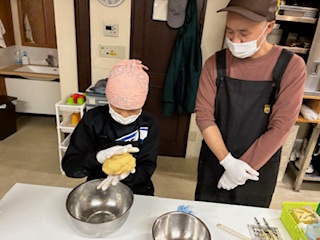 「cafe jigsaw」での体験の様子です。今日はクッキー作りをしました。力のいる作業にがんばって取り組んでいました。[image0.jpeg][image1.jpeg][image2.jpeg]
