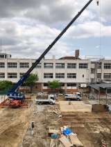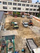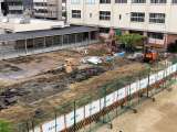 給食調理室の工事ですが、仮設渡り廊下はアスファルトがほぼ捲られています。この後は...