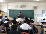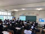 1年1組の英語、2組の社会、3組の家庭科の授業の様子です。