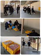 ごちそうさまでした。 給食室へ食器等を運んで、牛乳パックの整理をしています。