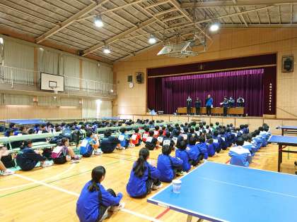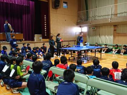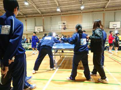 卓球部 中級者講習会 公開日 2019/12/03 更新日 2019/12/03 出来事 12月1日(日)に、加美南中学校で中級者講習会がありました。今回はサーブでポイントをとる方法や、さまざまな練習法について学びました。