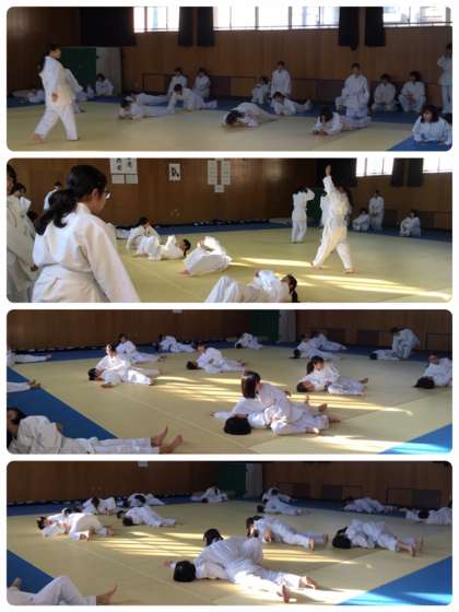 2年生女子の体育の授業の様子です。 安全面に配慮して、投げ技の練習にも取り組みました。