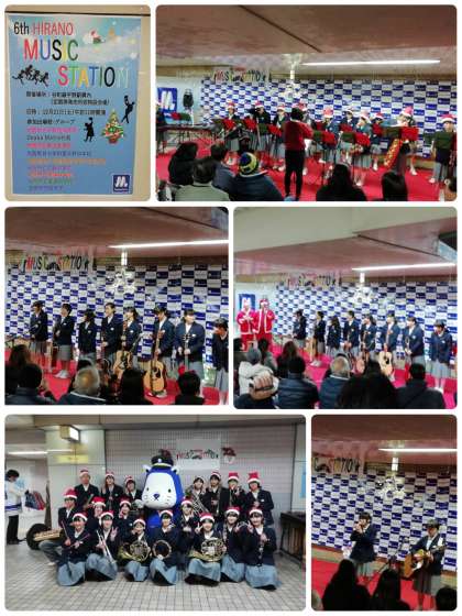 地下鉄平野駅でのコンサートが先ほど終わりました。本校から吹奏楽部とギター部が出演いたしました。