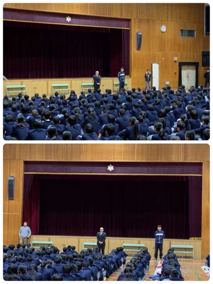 2学期 終業式 公開日 2019/12/25 更新日 2019/12/25 出来事 本日、2学期の終業式を無事に終えました。 明日から冬休みに入りますが、今年一年間の自分をじっくりと見つめ直し、気持ちを新たにして、新年を迎えてください。 3学期の始業式は、1月7日(火)です。