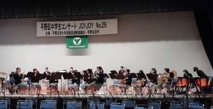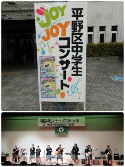 本日、平野区中学コンサートJoyJoy No.26が開催され、ギター部と吹奏楽部の皆さんが出演しました。