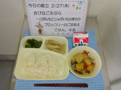今日の給食では、5/10に紹介したキビナゴを天ぷら用に加工した製品を給食室で揚げています。