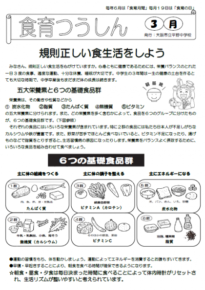 下記は3月分の「食育通信」です。配布文書のコーナーにも掲載しましたので、ご覧ください。