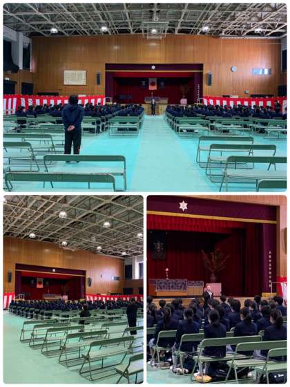新型コロナウイルス感染症の影響を受け、臨時休業中ですが、本日1年生と2年生の学年別に修了式を実施しました。
