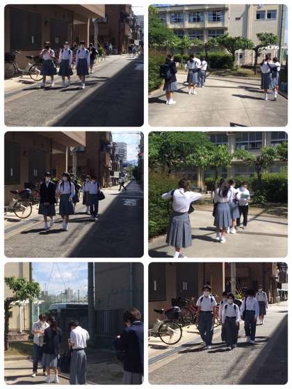 5月20日(水)今日は、1年生の登校日です。 1年生は、南門から登校しています。