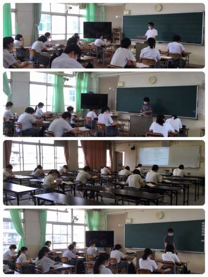 3年生の授業の様子です。 1組技術、2組家庭、3組英語、4組社会の授業です。