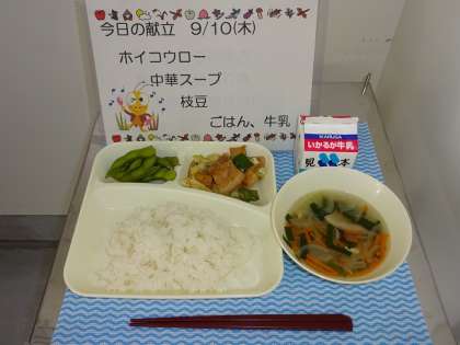 今日の給食では、豚ばら肉をいったんゆでておいて、キャベツやピーマンと一緒に炒め、テンメンジャン、砂糖、塩、こい口しょうゆを合わせたタレで味つけしています。