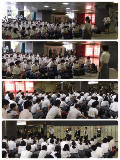 南九州方面への修学旅行がはじまります。 新大阪駅での出発式の様子です。