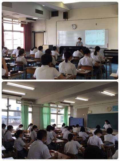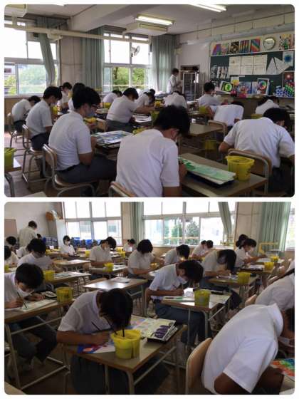 授業の様子です。 1年音楽、3年数学、3年美術です。
