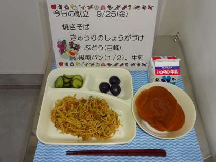 今日の給食では、焼きそばとして使用しています。大阪では、定食としても存在し、焼きそばをおかずにして、ご飯やみそ汁を食べる習慣があります。このような組み合わせの場合、「炭水化物ばかりの組み合わせだ。」とよく言われます。給食の場合も、パンとの組み合わせで提供しており、よくこのように言われます。しかし、給食の場合は、その点も調整しており、炭水化物ばかりで、栄養バランスを崩しているようなことはありませんのでご安心ください。炭水化物の量は、糖質の量であらわされており、各ご家庭に配布している献立表にも掲載しておりますので、他の献立と比べてとくに糖質の量が多いということはないとわかっていただけると思います。