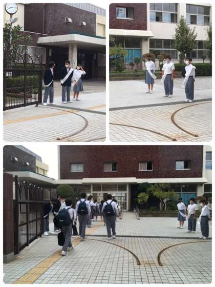 本日、生徒会に立候補している生徒のみなさんが 正門であいさつ運動を行いました。
