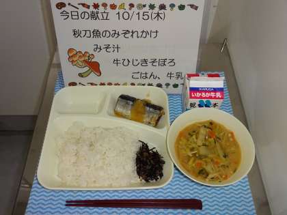 今日の給食では、北海道の沖合でとれた骨付きのさんまに塩で下味をつけて焼き、だいこんおろし、みりん、薄口しょうゆ、ゆず果汁で作ったたれをかけています。