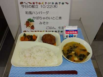 今日の給食では、小豆とかぼちゃを使って「いとこ煮」にしています。