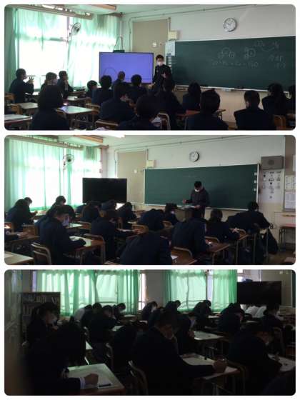 今日の授業の様子です。 3年生は実力テストです。がんばれ!