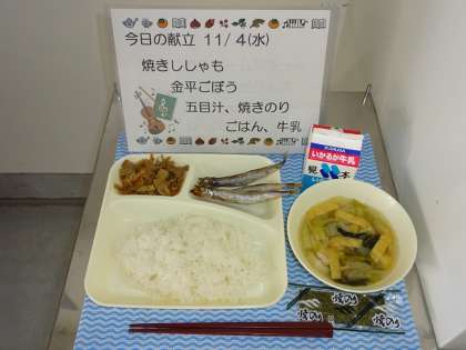 今日の給食では、カペリン(樺太ししゃも)をオーブンで焼いています。