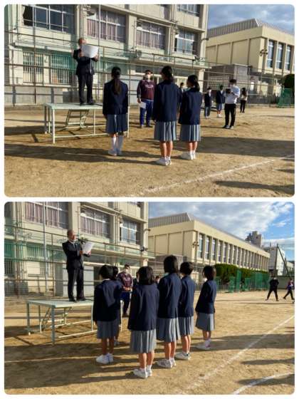 本日の全校集会で、ソフトボール部、卓球部に賞状伝達を行いました。