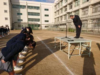 全校集会・賞状伝達 公開日 2020/11/30 更新日 2020/11/30 出来事 本校のギター部が、 第41回軽音楽系クラブコンテスト関西大会・動画予選会において、 優秀校賞を受賞し、グランプリ大会の出場権を獲得しました。 グランプリ大会でも頑張ってください。