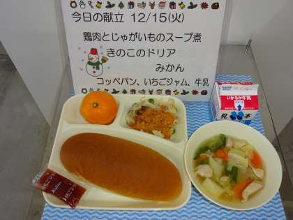 今日の給食では、しめじ、マッシュルームとともに「きのこのドリア」として、使用しています。