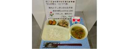 本日は冬至ではありませんが、焼いたかぼちゃ(なんきん)に、砂糖としょうゆでつくった甘い蜜をかけ、和風の手作りスイーツとして給食の献立に取り入れています。