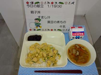 今日の給食では、乾燥した黒豆を熱湯に浸し、砂糖と塩、しょうゆで作った調味液とともにバットに入れ、オーブンを使って煮こんだ手作りの煮豆として提供しています。
