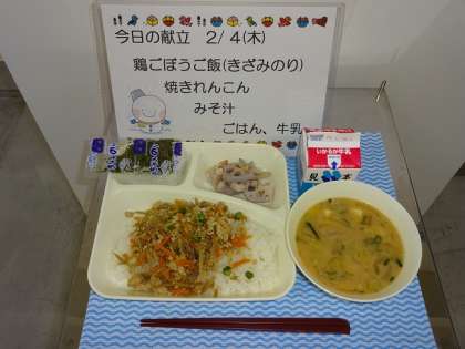 献立名 ・鶏ごぼうご飯(きざみのり)