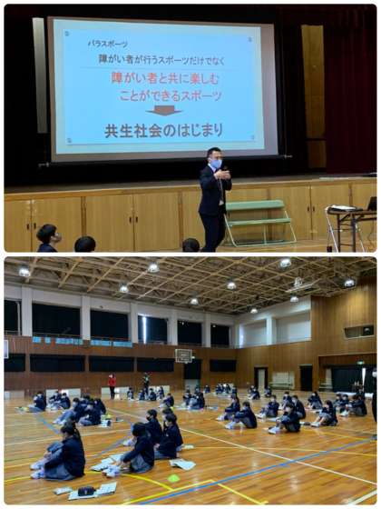 本日、2年生はオリンピック・パラリンピック推進事業の取組として、パラスポーツを通じて共生社会を考える授業を行っています。