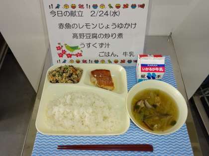 大阪市の学校給食では、国産レモンを使用しており、今日の「赤魚のレモン醤油かけ」では和歌山産のものを使用しています。