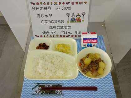 肉じゃがというと、今では家庭料理の定番となっていますが、その発祥は、日露戦争(1904〜1905)当時の海軍のメニューだったといわれています。そのころ海軍の司令官だった東郷平八郎が、イギリスへ留学していた時に食べたビーフシチューの味が忘れられず、料理長につくらせたところ、同じような材料で砂糖としょうゆで味つけされた肉じゃがになったといわれていますが、真相は明らかではありません。しかし、海軍経理学校で1938年に発刊された「海軍厨業管理教科書」にもその作り方が記載されており、カレーライスなどとともに海軍の艦上食として広まったのは間違いないようです。どちらも牛肉、ジャガイモ、タマネギなど同じような材料で作ることができるため、材料補給がしやすいことや、肉や野菜を合わせて使うことで、当時の水兵の栄養不足の解消にも役立つことから都合の良い献立だったのかもしれません。また、海軍だけでなく、陸軍の軍隊調理法の中にも「肉と馬鈴薯の甘煮」という名でその調理法が記載されていたそうです。このようなことから、兵士たちが食べていた料理が家庭に伝えられて広まっていったのではないかと考えられます。