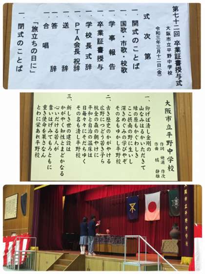 明日の卒業証書授与式に向けて、卒業式予行・準備を行いました。