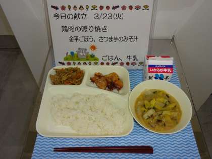 ※本日で本年度の給食は最後となります。今年度は、学校休業からはじまり、簡易給食の実施や真夏の猛暑の中での実施など、通常通りではないこともありましたが、何かとご協力いただきありがとうございました。