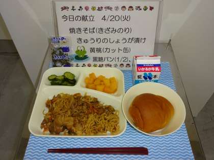 今日の給食の黄桃(カット缶)は、山形県産の黄桃を使用しています。