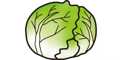 キャベツは、ヨーロッパの地中海や大西洋沿岸が原産とされ、古代ギリシャ・ローマ人も食用としていた最古の野菜の一つで、世界で最もポピュラーな葉菜(ようさい)となっています。「キャベツ」という名は、頭の形をしたという意味ですが、もとの野生種は、結球しないものだったようです。これをケルト人がヨーロッパ各地に広め、その過程で花を食べるブロッコリーやカリフラワー、わき芽を食べる芽キャベツなどに分かれ、そして現在のような結球するキャベツが誕生したようです。日本に伝わったのは、江戸時代末期で、「甘藍(かんらん)」、「玉菜(たまな)」などと呼ばれ、明治時代から大正時代にかけて、「トンカツ」の流行とともに、キャベツの生食が急速に普及したそうです。