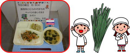 今日の給食では、「そぼろ丼」の具として使用しています。また、この献立は、一昨年度の献立コンクールで、本校が出品し、最優秀賞となった献立で、たいへん好評であったため、定番の給食献立となりました。
