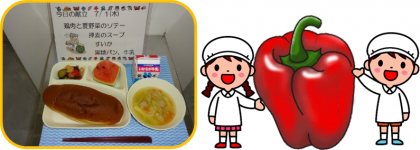 今日の給食では、「夏野菜のソテー」に使用し、鮮やかな赤色が料理の引き立て役となっています。