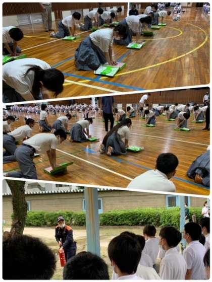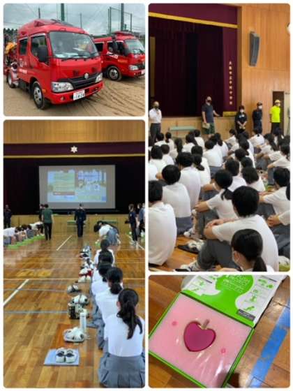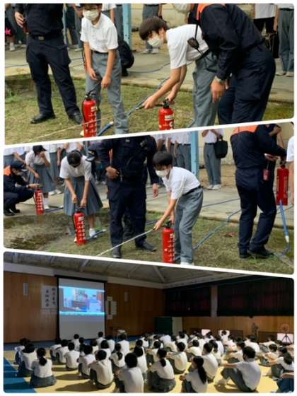 防災訓練 公開日 2021/07/03 更新日 2021/07/03 出来事 火災を想定した避難訓練の後、消防署の方、地域の防災リーダーの方々にご協力いただき、防災訓練を行いました。水消化器訓練、搬送訓練、救急救命訓練を通して正しい知識を習得し、災害時には今日学んだことをいかしましょう。 関係諸機関、地域の皆さま、ご協力ありがとうございました。
